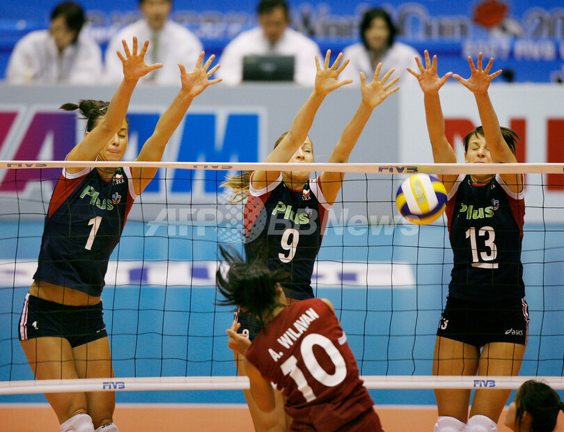 【11月16日 AFP】バレーボールW杯2007(FIVB Volleyball World Cup 2007)・女子・第4ラウンド、ポーランドvsタイ。試合はポーランドがセットカウント3-0(25-15、25-17、25-22)のストレートでタイを降し通算7勝5敗の6位で大会を終えた。一方タイは、2勝9敗の10位に終わった。(c)AFP