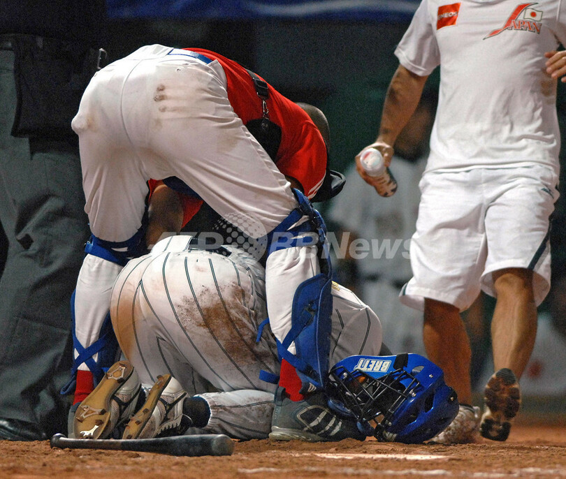スポーツ 野球 日本 キューバに敗れて決勝進出を逃し3位決定戦へ 2007年11月18日 0:01 発信地:台北/台湾 [ 中国・台湾 台湾 ] このニュースをシェア ‹ › ❮ 2/6 ❯ 死球を受けてうずくまる日本の林稔幸(%%Toshiyuki Hayashi%%、下)。(c)AFP/Sam YEH 画像作成中 ! 【11月18日 AFP】07野球W杯(37th Baseball World Cup 2007)・決勝トーナメント・準決勝、日本vsキューバ。試合は日本が3-5で敗れ、決勝進出を逃し3位決定戦に回ることが決まった。(c)AFP 野球 一覧へ> メディア・報道関係・法人の方向け 写真・動画 購入のお問合せ>