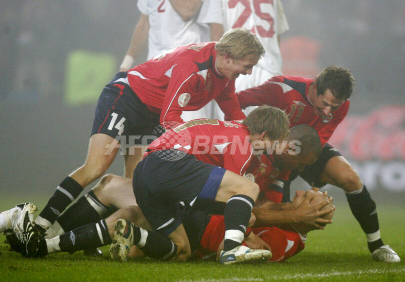 スポーツ サッカー <サッカー 欧州選手権2008・予選>トルコ ノルウェーを降しグループ2位に浮上 2007年11月18日 5:56 発信地:オスロ/ノルウェー [ ヨーロッパ ノルウェー ] このニュースをシェア ‹ › ❮ 8/8 ❯ 前半12分にエリック・ハーゲン(%%Erik Hagen%%)が決めた先制ゴールに歓喜するノルウェーの選手たち。(c)AFP/STIAN LYSBERG SOLUM 画像作成中 ! 【11月18日 AFP】サッカー、欧州選手権2008(Euro 2008)・予選グループC、ノルウェーvsトルコ。試合はトルコが2-1でノルウェーを降し、勝ち点を21に伸ばして本大会出場圏内のグループ2位に浮上した。(c)AFP サッカー 一覧へ> メディア・報道関係・法人の方向け 写真・動画 購入のお問合せ>