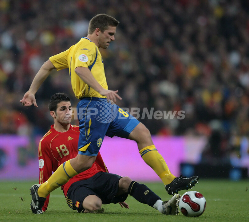 スポーツ サッカー <サッカー 欧州選手権2008・予選>スペイン スウェーデン降し本大会出場を決める 2007年11月18日 12:10 発信地:マドリード/スペイン [ ヨーロッパ スペイン ] このニュースをシェア ‹ › ❮ 6/15 ❯ スウェーデンのアンデルス・スベンソン (%%Anders Svensson%%、右)にスライディングタックルを仕掛けるスペインのセスク・ファブレガス(%%Cesc Fabregas%%)。(c)AFP/PIERRE-PHILIPPE MARCOU 画像作成中 ! 【11月18日 AFP】サッカー、欧州選手権2008(Euro 2008)予選・グループF、スペインvsスウェーデン。試合はスペインが3-0でスウェーデンを降し、スペインは通算成績を8勝2敗1分けとし勝ち点を25に伸ばし1試合を残して本大会への出場を決めた。(c)AFP サッカー 一覧へ> メディア・報道関係・法人の方向け 写真・動画 購入のお問合せ>