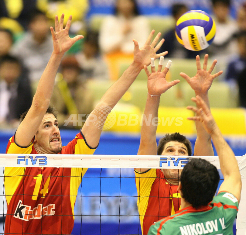 スポーツ スポーツ その他 ブルガリア スペインを降しW杯初戦を白星で飾る 2007年11月18日 20:04 発信地:長野 [ アジア・オセアニア 長野 ] このニュースをシェア ‹ › ❮ 4/9 ❯ ブルガリアのウラジーミル・ニコロフ(%%Vladimir Nikolov%%)のスパイクをブロックしようと手を伸ばすスペインのエンリケ・デラフェンテ(%%Enrique De La Fuente%%、中央)とルイス・モルト・ホセ(%%Luis Molto Jose%%、左)。(c)AFP/KAZUHIRO NOGI 画像作成中 ! 【11月18日 AFP】バレーボールW杯2007(FIVB Volleyball World Cup 2007)・男子・第1ラウンド、ブルガリアvsスペイン。試合はブルガリアがセットカウント3-1(25-21、19-25、25-20、25-17)でスペインを破り、初戦を白星で飾った。(c)AFP スポーツ その他 一覧へ> メディア・報道関係・法人の方向け 写真・動画 購入のお問合せ>