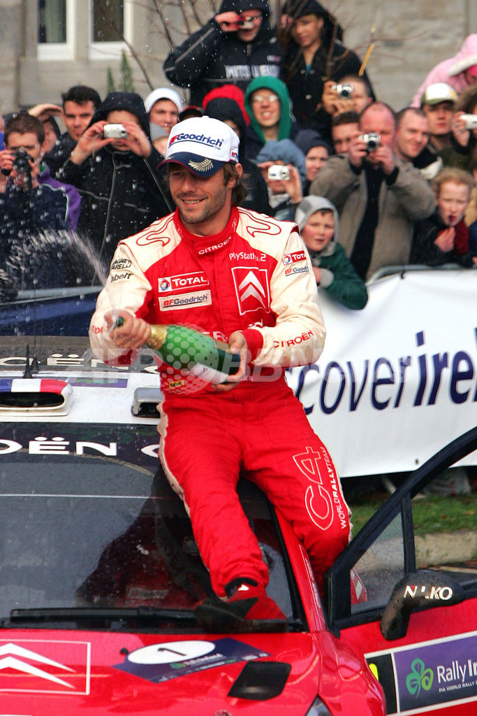 【11月19日 AFP】(写真追加)世界ラリー選手権(WRC)・第15戦、ラリーアイルランド、第3レグ。総合首位からスタートしたシトロエンC4(Citroen C4)のセバスチャン・ローブ(Sebastian Loeb、フランス)は、合計タイム3時間01分39秒2を記録してシーズン8勝目を挙げた。