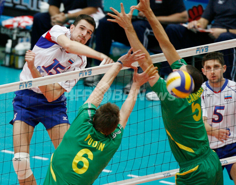 スポーツ スポーツ その他 ロシア オーストラリアをストレートで破り2勝目 2007年11月19日 15:52 発信地:埼玉 [ アジア・オセアニア 埼玉 ] このニュースをシェア ‹ › ❮ 6/7 ❯ オーストラリアのイゴール・ユーディン(%%Igor Yudin%%、左手前)とルーク・キャンベル(%%Luke Campbell%%、右2)の2枚ブロックをスパイクで破るロシアのアレクサンデル・コサレフ(%%Alexander Kosarev%%)。(c)AFP/Toru YAMANAKA 画像作成中 ! 【11月19日 AFP】バレーボールW杯2007(FIVB Volleyball World Cup 2007)・男子・第1ラウンド、ロシアvsオーストラリア。試合はロシアがセットカウント3-0(25-22、28-26、25-10)のストレートでオーストラリアを降し、2勝目を挙げた。(c)AFP スポーツ その他 一覧へ> メディア・報道関係・法人の方向け 写真・動画 購入のお問合せ>