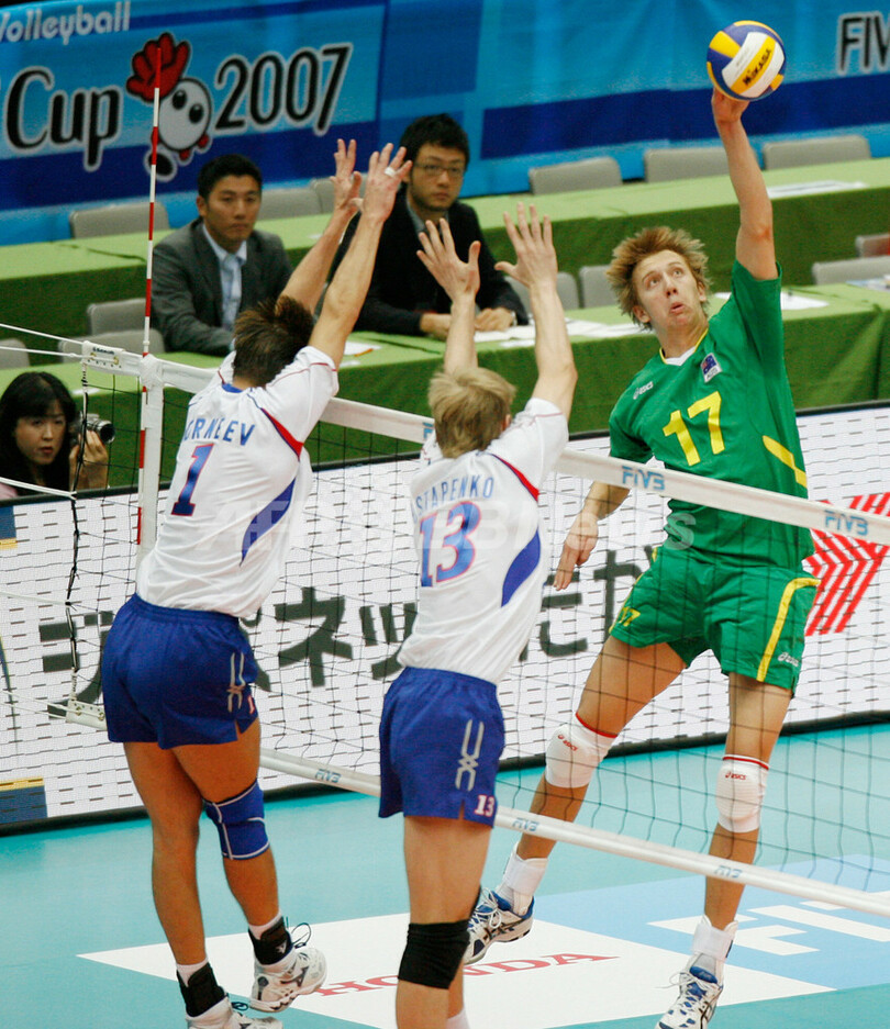 スポーツ スポーツ その他 ロシア オーストラリアをストレートで破り2勝目 2007年11月19日 15:52 発信地:埼玉 [ アジア・オセアニア 埼玉 ] このニュースをシェア ‹ › ❮ 3/7 ❯ ロシアのアレクサンデル・コルニェーエフ(%%Alexander Korneev%%、左)とアレクセイ・オスタペンコ(%%Alexey Ostapenko%%、中央)のブロックを外しスパイクを放つオーストラリアのポール・キャロル(%%Paul Carroll%%)。(c)AFP/Toru YAMANAKA 画像作成中 ! 【11月19日 AFP】バレーボールW杯2007(FIVB Volleyball World Cup 2007)・男子・第1ラウンド、ロシアvsオーストラリア。試合はロシアがセットカウント3-0(25-22、28-26、25-10)のストレートでオーストラリアを降し、2勝目を挙げた。(c)AFP スポーツ その他 一覧へ> メディア・報道関係・法人の方向け 写真・動画 購入のお問合せ>