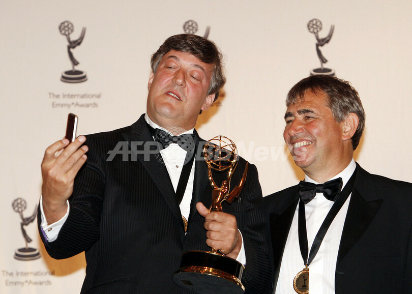 2007年11月19日、ヒルトン・ニューヨーク(Hilton New York)で開催された「第35回国際エミー賞(35th International Emmy Awards)」の授賞式に登場し、ドキュメンタリー部門で作品賞(%%Best documentary%%)を受賞した英国のテレビ番組『%%The Secret Life of the Manic Depresive%%』の出演俳優のスティーヴン・フライ(%%Stephen Fry%%、左)と同番組プロデューサー/監督の%%Ross Wilson%%。(c)AFP/Stan HONDA
