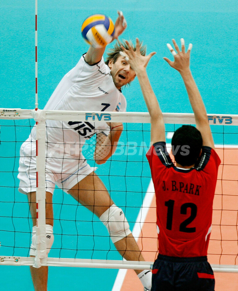 スポーツ スポーツ その他 アルゼンチン 韓国を降し2連勝 2007年11月20日 20:05 発信地:埼玉 [ アジア・オセアニア 埼玉 ] このニュースをシェア ‹ › ❮ 5/8 ❯ 韓国のパク・ジュンボン(%%Park Jun-Bum%%)のブロックに対しスパイクを打つアルゼンチンのマルコス・ミリンコビッチ(%%Marcos Milinkovic%%、左)。(c)AFP/TORU YAMANAKA 画像作成中 ! 【11月20日 AFP】バレーボールW杯2007(FIVB Volleyball World Cup 2007)・男子・第1ラウンド、アルゼンチンvs韓国。試合はアルゼンチンがセットカウント3-0(26-24、25-22、25-20)のストレートで韓国を降し、2連勝を飾った。(c)AFP スポーツ その他 一覧へ> メディア・報道関係・法人の方向け 写真・動画 購入のお問合せ>