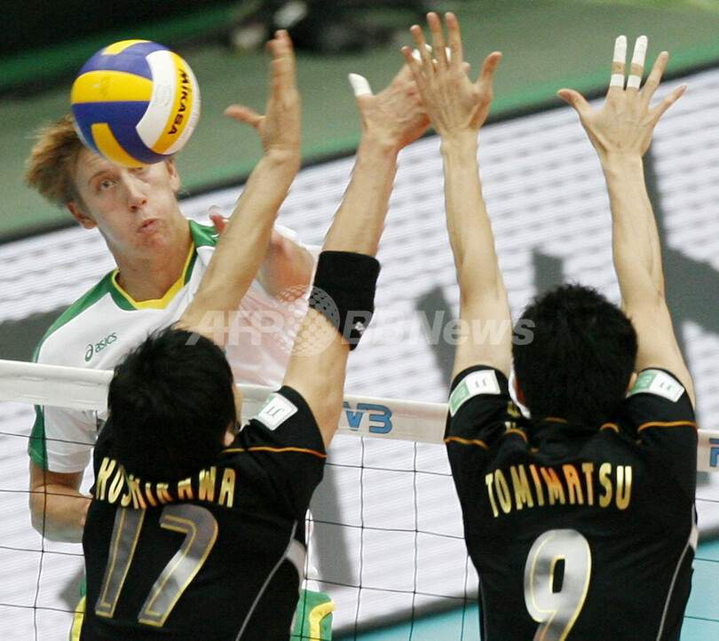 スポーツ スポーツ その他 日本 オーストラリアにストレートで敗れ2敗目 2007年11月20日 21:26 発信地:埼玉 [ アジア・オセアニア 埼玉 ] このニュースをシェア ‹ › ❮ 8/9 ❯ 日本の越川優(%%Yu Koshikawa%%、中央)と富松崇彰(%%Takaaki Tomimatsu%%、右)のブロックに対しスパイクを打つオーストラリアのポール・キャロル(%%Paul Carroll%%)。(c)AFP/TORU YAMANAKA 画像作成中 ! 【11月20日 AFP】バレーボールW杯2007(FIVB Volleyball World Cup 2007)・男子・第1ラウンド、日本対オーストラリア。試合は日本がセットカウント0-3(19-25、21-25、21-25)のストレートでオーストラリアに敗れ、2敗目を喫した。(c)AFP スポーツ その他 一覧へ> メディア・報道関係・法人の方向け 写真・動画 購入のお問合せ>