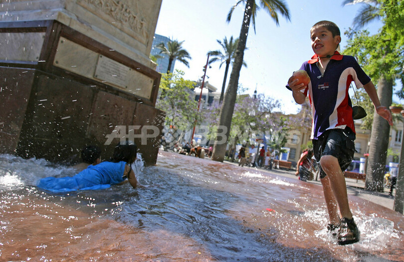 ニュース 社会 チリ中央部に予期せぬ熱波 2007年11月22日 18:19 発信地:サンティアゴ/チリ [ 中南米 チリ ] このニュースをシェア ‹ › ❮ 3/4 ❯ 2007年11月20日、チリのサンティアゴ(Santiago)にあるアルマス広場(Plaza de Armas)の噴水の中を走る少年。(c)AFP/Martin BERNETTI 画像作成中 ! 【11月22日 AFP】20日、チリ中央部が突然、熱波に襲われた。この影響で首都サンティアゴ(Santiago)のアルマス広場(Plaza de Armas)などでは、子どもたちが暑さをしのごうと水遊びをする姿が見られた。(c)AFP 社会 一覧へ> メディア・報道関係・法人の方向け 写真・動画 購入のお問合せ>