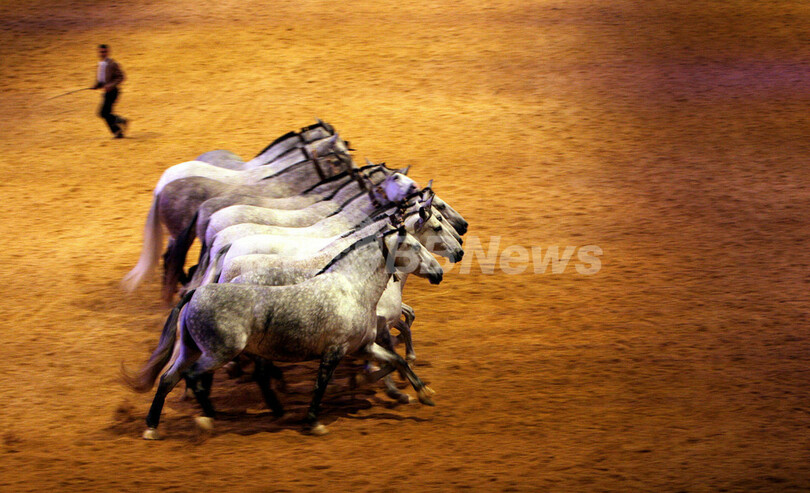 ニュース ライフ セビリアで馬術見本市開幕、純血種1200種以上を出品 2007年11月22日 8:38 発信地:セビリア/スペイン [ ヨーロッパ スペイン ] このニュースをシェア ‹ › ❮ 9/10 ❯ 2007年11月20日、スペインのセビリアで開幕した馬の国際見本市「シカブ(Sicab)」で行われたリハーサル。(c)AFP/CRISTINA QUICLER 画像作成中 ! 【11月22日 AFP】スペインのセビリア(Seville)で20日から25日まで、馬の国際見本市「シカブ(Sicab)」が開催されている。毎年恒例となった見本市には、124の有名馬牧場から1200種を超える純血馬が出品される。(c)AFP ライフ 一覧へ> メディア・報道関係・法人の方向け 写真・動画 購入のお問合せ>