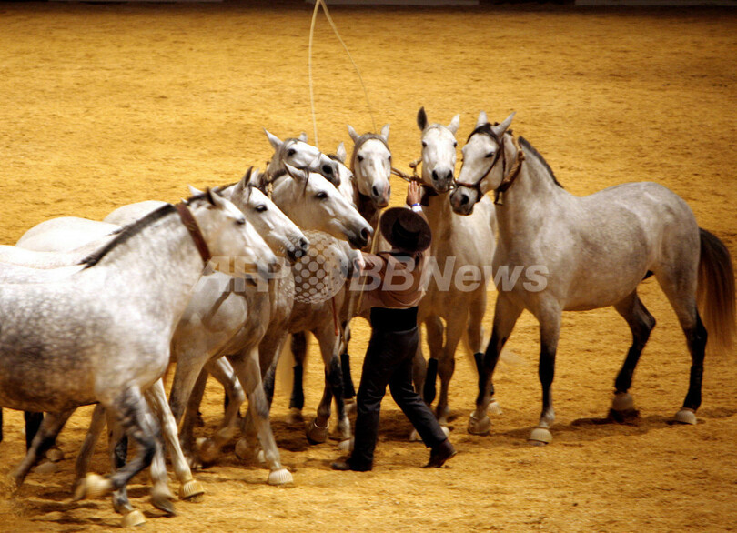 ニュース ライフ セビリアで馬術見本市開幕、純血種1200種以上を出品 2007年11月22日 8:38 発信地:セビリア/スペイン [ ヨーロッパ スペイン ] このニュースをシェア ‹ › ❮ 7/10 ❯ 2007年11月20日、スペインのセビリアで開幕した馬の国際見本市「シカブ(Sicab)」で行われたリハーサル。(c)AFP/CRISTINA QUICLER 画像作成中 ! 【11月22日 AFP】スペインのセビリア(Seville)で20日から25日まで、馬の国際見本市「シカブ(Sicab)」が開催されている。毎年恒例となった見本市には、124の有名馬牧場から1200種を超える純血馬が出品される。(c)AFP ライフ 一覧へ> メディア・報道関係・法人の方向け 写真・動画 購入のお問合せ>