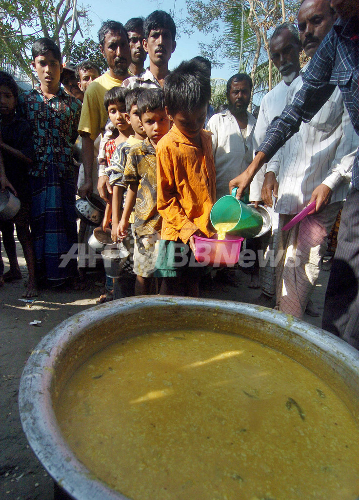 【11月21日 AFP】(写真追加)バングラデシュ軍は21日、大型サイクロン「シドル(Sidr)」の直撃を受けた同国南部沿岸地域にようやく救援物資を届けたと発表した。被災地は孤立しており避難施設もなく、数百万人が飢死する恐れもある。