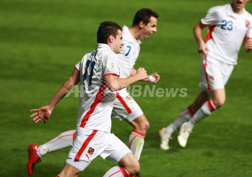スポーツ サッカー <サッカー 欧州選手権2008・予選>チェコ キプロスを降しグループ1位で本大会へ 2007年11月22日 9:31 発信地:ニコシア/キプロス [ ヨーロッパ キプロス ] このニュースをシェア ‹ › ❮ 5/9 ❯ 前半11分に先制点を決めて歓喜するチェコのダニエル・プディル(%%Daniel Pudil%%、手前)とマレク・マテジョフスキー(%%Marek Matejovsky%%、中央)。(c)AFP/SAKIS SAVVIDES 画像作成中 ! 【11月22日 AFP】サッカー、欧州選手権2008(Euro 2008)・予選グループD、キプロスvsチェコ。試合はチェコが2-0で勝利を収め、勝ち点を29に伸ばしてグループ1位で予選を終えた。(c)AFP サッカー 一覧へ> メディア・報道関係・法人の方向け 写真・動画 購入のお問合せ>