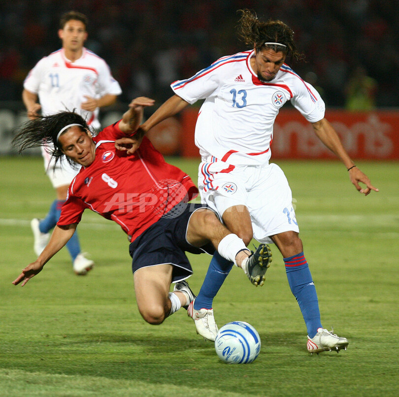 スポーツ サッカー パラグアイ アウェーでチリに快勝し首位に浮上 2007年11月22日 14:22 発信地:サンティアゴ/チリ [ 中南米 チリ ] このニュースをシェア ‹ › ❮ 3/10 ❯ チリのウーゴ・ドロゲット(%%Hugo Droguett%%、左)と競り合うパラグアイのエンリケ・ベラ(%%Enrique Vera%%)。(c)AFP/RAUL BRAVO 画像作成中 ! 【11月22日 AFP】2010年サッカーW杯南アフリカ大会(2010 World Cup)・南米予選・第4節、チリvsパラグアイ。試合はアウェーのパラグアイが3-0で快勝し、通算成績を3勝1分けとして首位に浮上した。(c)AFP サッカー 一覧へ> メディア・報道関係・法人の方向け 写真・動画 購入のお問合せ>