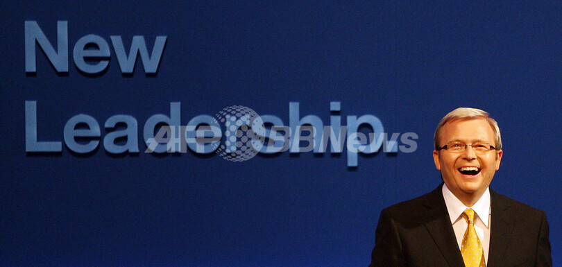 「ハワード氏は今回の件がいかにして起こり、自由党組織内の誰がこれに気づいていたのかを説明する必要がある」とラッド党首は出演したラジオ番組で語った。「選挙前夜に起こった自由党による自暴自棄と苦し紛れの政治のあらわれだ」(c)AFP/Marc Lavine