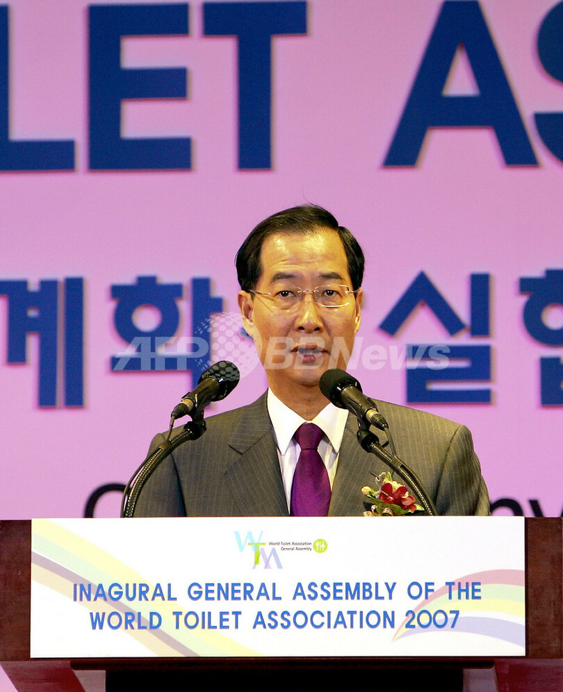 世界トイレ協会の発足提唱者である韓国の沈載徳(シム・ジェドク、Sim Jae-Duck)氏は、協会のキャンペーンを宣伝するため、160万ドル(約1億7000万円)を投じてトイレの形をした自宅まで建てた。22日の創立総会には、60を超える国から衛生当局の職員や衛生関連企業関係者ら約1300人が出席した。(c)AFP/Park Chan-Kyong