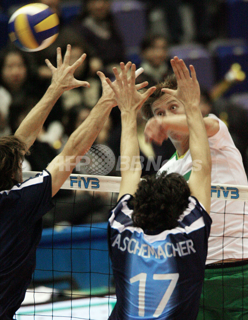 スポーツ スポーツ その他 アルゼンチン オーストラリアを降して3勝目 2007年11月23日 19:21 発信地:広島 [ アジア・オセアニア 広島 ] このニュースをシェア ‹ › ❮ 6/6 ❯ アルゼンチンのギジェルモ・ガルシア(%%Guillermo Garcia%%、左)、ロドリゴ・アスチェマチェル(%%Rodrigo Aschemacher%%、右)のブロックに対しスパイクを打ち込むオーストラリアのポール・キャロル(%%Paul Carroll%%、中央)。(c)AFP/TOSHIFUMI KITAMURA 画像作成中 ! 【11月23日 AFP】バレーボールW杯2007(FIVB Volleyball World Cup 2007)・男子・第2ラウンド、アルゼンチンvsオーストラリア。試合はアルゼンチンがセットカウント3-1(25-21、21-25、25-14、25-23)でオーストラリアを降し、3勝目を挙げた。(c)AFP スポーツ その他 一覧へ> メディア・報道関係・法人の方向け 写真・動画 購入のお問合せ>
