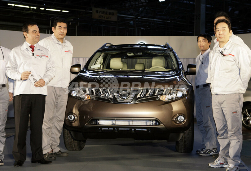 【11月23日 AFP】日産自動車(Nissan Motor)は23日、多目的スポーツ車(SUV)「ムラーノ(Murano)」の新モデルの生産開始式典を、同社九州工場で行った。式典にはカルロス・ゴーン(Carlos Ghosn)社長も出席した。2代目モデルとなる新型「ムラーノ」は、今月、米国のロサンゼルス・モーター・ショー(Los Angels Motor Show)で発表されている。エンジンは3.5リットルで、販売開始は2008年春頃となる見込み。(c)AFP
