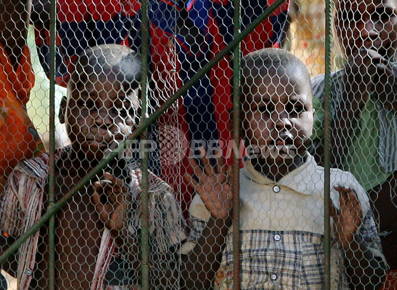 ニュース 社会 チャド子ども誘拐未遂事件、子どもたちが両親らと面会 2007年11月24日 8:45 発信地:アベシェ/チャド [ アフリカ チャド ] このニュースをシェア ‹ › ❮ 2/2 ❯ 2007年11月16日、チャド東部アベシェ(Abeche)の孤児院で、両親らとの面会を待つ子どもたち。(c)AFP/THOMAS COEX 画像作成中 ! 【11月24日 AFP】フランスの援助団体「ゾエの箱舟(Zoe’s Ark)」により前月、チャドからフランスへ連れ出されそうになるところを現地当局に保護された103人の子どもたちが16日、同国東部のアベシェ(Abeche)にある収容先の孤児院で両親らと面会した。同団体の主張に反し、子どもたちの大半が隣国スーダンのダルフール(Darfur)地方出身ではなく、孤児でもないことが明らかになり、同団体は国際社会から激しい非難を浴びている。(c)AFP 社会 一覧へ> メディア・報道関係・法人の方向け 写真・動画 購入のお問合せ>
