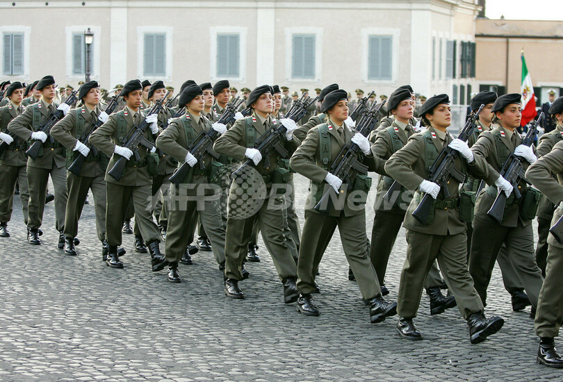 ニュース ライフ イタリア大統領官邸で、衛兵交代式に女性兵士が初登場 2007年11月25日 7:34 発信地:ローマ/イタリア [ ヨーロッパ イタリア ] このニュースをシェア ‹ › ❮ 3/3 ❯ 2007年11月23日、ローマ(Roma)にある大統領官邸クイリナーレ宮(Quirinale Palace)で、初めての衛兵交代式に臨む女性兵士。(c)AFP/ANDREAS SOLARO 画像作成中 ! 【11月25日 AFP】イタリアの首都ローマ(Rome)にある大統領官邸クイリナーレ宮(Quirinale Palace)で23日、毎日行われる衛兵交代式に女性兵士が初めて登場した。式に参加したのは第235連隊「Piceno」から志願した50人の女性兵士。(c)AFP ライフ 一覧へ> メディア・報道関係・法人の方向け 写真・動画 購入のお問合せ>