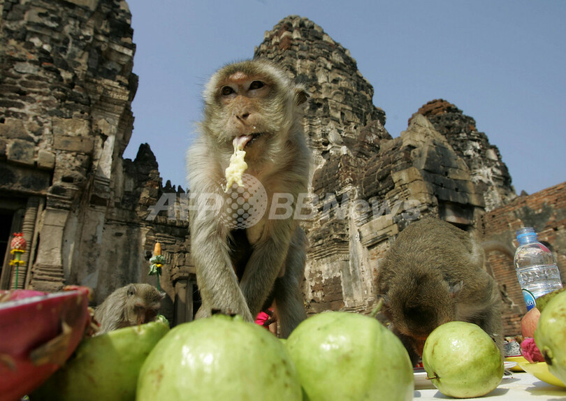 ニュース ライフ 年に一度のおもてなし、タイで「サルのビュッフェ祭り」 2007年11月25日 19:31 発信地:ロッブリー/タイ [ アジア・オセアニア タイ ] このニュースをシェア ‹ › ❮ 1/9 ❯ 2007年11月25日、タイの首都バンコク(Bangkok)の北150キロにあるロッブリー(Lopburi)で開催された毎年恒例の「サルのビュッフェ」で、古代寺院の前でごちそうにありついたサルたち。(c)AFP/Pornchai KITTIWONGSAKUL 画像作成中 ! 【11月25日 AFP】タイの首都バンコク(Bangkok)の北150キロにあるロッブリー(Lopburi)で25日、毎年恒例の「サルのビュッフェ」が行われ、2000キロ以上の果物や野菜がサルに振舞われた。(c)AFP ライフ 一覧へ> メディア・報道関係・法人の方向け 写真・動画 購入のお問合せ>