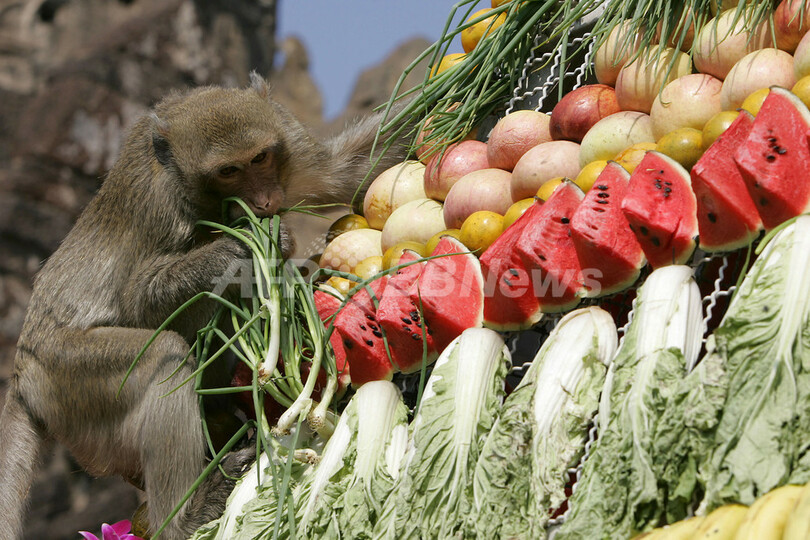 ニュース ライフ 年に一度のおもてなし、タイで「サルのビュッフェ祭り」 2007年11月25日 19:31 発信地:ロッブリー/タイ [ アジア・オセアニア タイ ] このニュースをシェア ‹ › ❮ 4/9 ❯ 2007年11月25日、タイの首都バンコク(Bangkok)の北150キロにあるロッブリー(Lopburi)で開催された毎年恒例の「サルのビュッフェ」で、古代寺院の前でごちそうにありついたサルたち。(c)AFP/Pornchai KITTIWONGSAKUL 画像作成中 ! 【11月25日 AFP】タイの首都バンコク(Bangkok)の北150キロにあるロッブリー(Lopburi)で25日、毎年恒例の「サルのビュッフェ」が行われ、2000キロ以上の果物や野菜がサルに振舞われた。(c)AFP ライフ 一覧へ> メディア・報道関係・法人の方向け 写真・動画 購入のお問合せ>