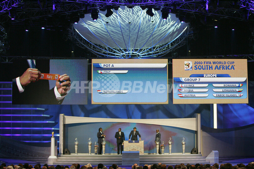 【11月26日 AFP】2010年サッカーW杯南アフリカ大会(2010 World Cup)の各地区の予選組み合わせ抽選会が25日に開催国である南アフリカのダーバンで開催され、欧州予選の組合せは以下のように決まった。なお、各グループ1位は本大会出場権を獲得し、各グループ2位のうち成績上位8か国はプレーオフを行い、勝利した4か国を加え欧州からは計13か国が本大会に出場する。