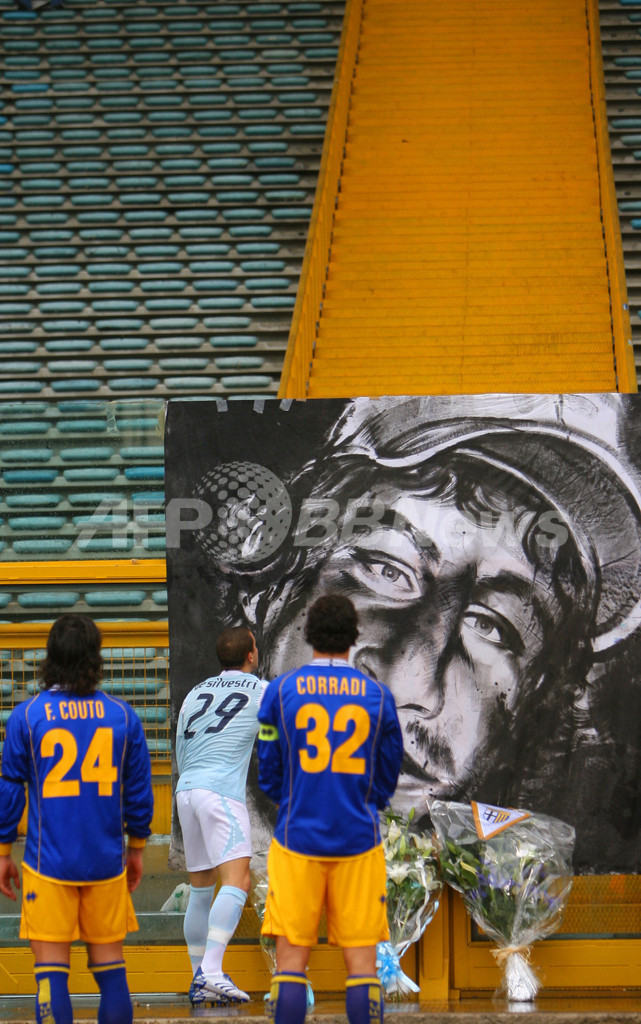 スポーツ サッカー ラツィオ パルマを降し連敗を3で止める 2007年11月26日 2:57 発信地:ローマ/イタリア [ ヨーロッパ イタリア ] このニュースをシェア ‹ › ❮ 8/9 ❯ 試合前、11月11日に警官の誤射により死亡したサポーターのガブリエレ・サンドリ(%%Gabriele Sandri%%)さんの似顔絵の前で哀悼の意を示すラツィオのファビオ・フィルマーニ(%%Fabio Firmani%%、左2)とパルマのベルナルド・コラッディ(%%Bernardo Corradi%%、中央)とフェルナンド・コウト(%%Fernando Couto%%、左)。(c)AFP/FILIPPO MONTEFORTE 画像作成中 ! 【11月26日 AFP】サッカー、07-08イタリア・セリエA・第13節、ラツィオ(SS Lazio)vsパルマ(Parma)。試合はラツィオが1-0で勝利を収め、連敗を3で止めた。(c)AFP サッカー 一覧へ> メディア・報道関係・法人の方向け 写真・動画 購入のお問合せ>