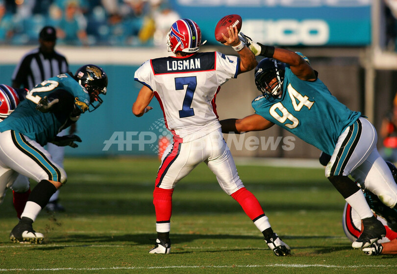 スポーツ アメリカンフットボール ジャガーズ ビルズを降し3連勝 2007年11月26日 13:10 発信地:ジャクソンビル/米国 [ 北米 米国 ] このニュースをシェア ‹ › ❮ 10/11 ❯ ジャガーズのジェレミー・ミンシー(%%Jeremy Mincey%%、右)のプレッシャーを受けながらパスを出すビルズのJ.P.ロスマン(%%J.P.Losman%%、中央)。(c)AFP/Getty Images Sam Greenwood 画像作成中 ! 【11月26日 AFP】07NFL・第12週、ジャクソンビル・ジャガーズ(Jacksonville Jaguars)vsバッファロー・ビルズ(Buffalo Bills)。試合はジャガーズが36-14でビルズを降し3連勝を飾った。(c)AFP/Getty Images アメリカンフットボール 一覧へ> メディア・報道関係・法人の方向け 写真・動画 購入のお問合せ>