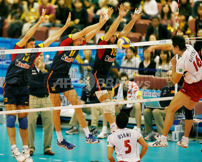 スポーツ スポーツ その他 日本 スペインに敗れ大会5敗目 2007年11月27日 21:15 発信地:福岡 [ アジア・オセアニア 福岡 ] このニュースをシェア ‹ › ❮ 3/7 ❯ スペインの(左から)ギリェルモ・ファラスカ(%%Guillermo Falasca%%)、フリアン・ガルシアトーレス(%%Julian Garcia-Torres%%)、イスラエル・ロドリゲス(%%Israel Rodriguez%%)の3枚ブロックにスパイクを打ち込む日本の石島雄介(%%Yusuke Ishijima%%、右)。(c)AFP/Toru YAMANAKA 画像作成中 ! 【11月27日 AFP】バレーボールW杯2007(FIVB Volleyball World Cup 2007)・男子・第3ラウンド、日本vsスペイン。試合は日本がセットカウント1-3(26-24、19-25、18-25、19-25)でスペインに敗れ、5敗目を喫した。(c)AFP スポーツ その他 一覧へ> メディア・報道関係・法人の方向け 写真・動画 購入のお問合せ>