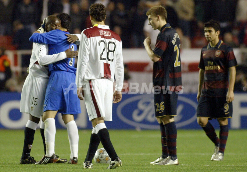 一方、前節で既に16強入りを決めていたアーセナルは、2005-06年シーズンからUEFA杯(UEFA Cup)で2連覇を果たしチャンピオンズリーグに初出場したセビージャに敗れ、勝ち点2差をつけられてグループ2位に転落した。(c)AFP/Phil Minshull