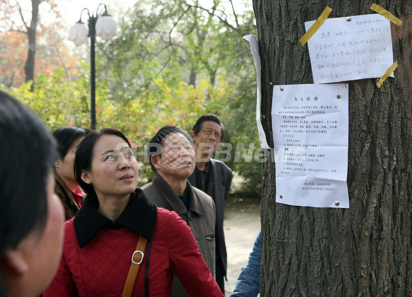 ニュース ライフ こぼれ話 現代中国のユニークなお見合い?「出会いの木」で親が相手探し 2007年11月29日 10:12 発信地:西安/中国 [ 中国・台湾 中国 ] このニュースをシェア ‹ › ❮ 3/4 ❯ 2007年11月25日、中国北部陝西(Shaanxi)省西安(Xian)の公園にある「出会いの木」に張り出された掲示を見る人たち。(c)AFP 画像作成中 ! 【11月29日 AFP】中国では高学歴で結婚せずに働き続ける息子や娘を心配し、結婚相手を親が熱心に探すケースも多い。北部陝西(Shaanxi)省西安(Xian)の公園にある、「出会いの木」とよばれる木には親が子どもの結婚相手を探す掲示が多数はられ、それをチェックする親の姿も見られる。(c)AFP ライフ 一覧へ> メディア・報道関係・法人の方向け 写真・動画 購入のお問合せ>