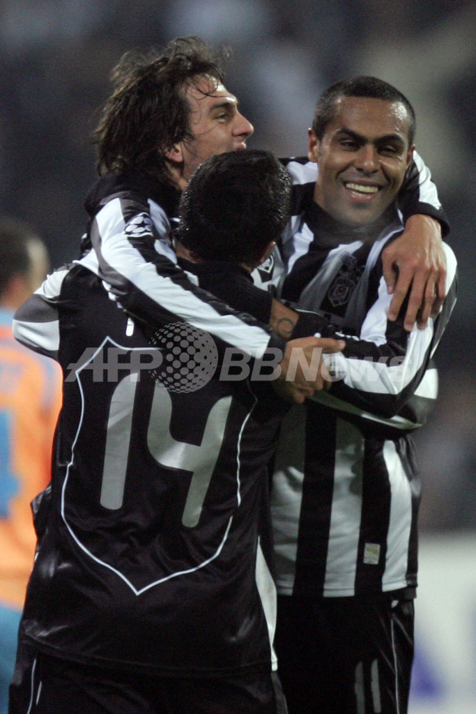 スポーツ サッカー ベシクタシュ マルセイユを降し決勝トーナメント進出に望みを繋ぐ 2007年11月29日 8:10 発信地:イスタンブール/トルコ [ 中東・北アフリカ トルコ ] このニュースをシェア ‹ › ❮ 1/8 ❯ 前半27分に先制点を決めたロドリーゴ・テージョ(%%Rodrigo Tello%%、手前)を祝福するベシクタシュのマティアス・デルガド(%%Matias Delgado%%、左)とメルト・ノブレ(%%Mert Nobre%%)。(c)AFP/MUSTAFA OZER 画像作成中 ! 【11月29日 AFP】サッカー欧州チャンピオンズリーグ2007-08(UEFA Champions League 2007-08)・グループリーグA・第5節、ベシクタシュ(Besiktas)vsオリンピック・マルセイユ(Olympique de Marseille)。試合はベシクタシュが2-1で勝利し、通算成績を2勝3敗として決勝トーナメント進出に望みを繋いだ。(c)AFP サッカー 一覧へ> メディア・報道関係・法人の方向け 写真・動画 購入のお問合せ>