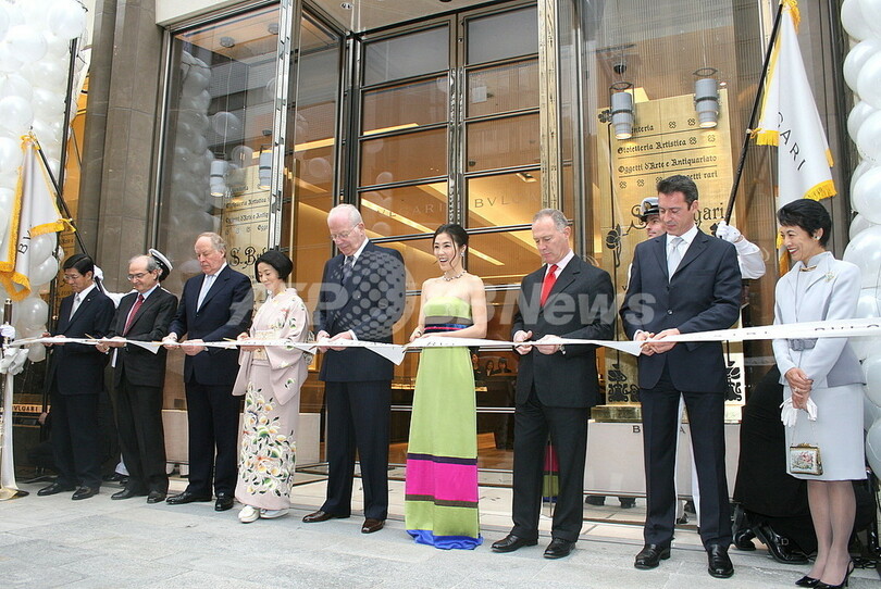 オープンに先駈け28日に開かれたオープニングセレモニーには、パオロ・ブルガリ(Paolo Bvlgari)会長や女優の富司純子、寺島しのぶ親子らが出席。パオロ・ブルガリ会長は「日本文化が持つエレガンスと洗練は我々にとっても共有する大切な価値観。銀座という重要な街に世界最大のショップをオープンできたことは、ブルガリの歴史にとって重大な節目です」とあいさつ。着物姿の富司は、松と富士山が描かれたブルガリのブローチを帯留めに使い、寺島は大粒のパールを使ったネックレスとピアスで、会場に彩りを添えた。