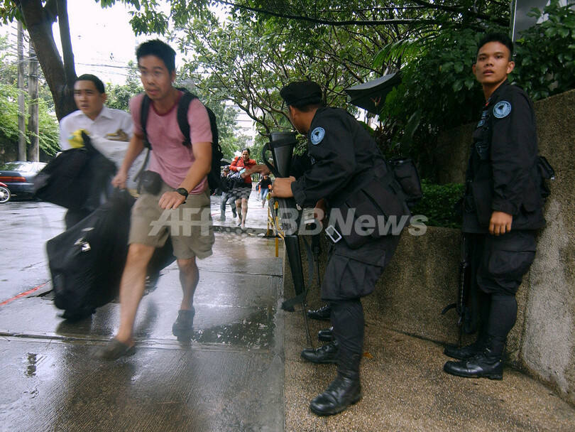 【11月29日 AFP】(30日写真追加)フィリピンのマニラ(Manila)首都圏マカティ(Makati)市内で29日、ペニンシュラ・ホテル(Peninsula Hotel)に反乱将校らのグループが立てこもりグロリア・アロヨ(Gloria Arroyo)大統領の辞任を要求していた事件は、同日午後、治安部隊がホテルに突入。反乱グループは全員投降し身柄を拘束された。