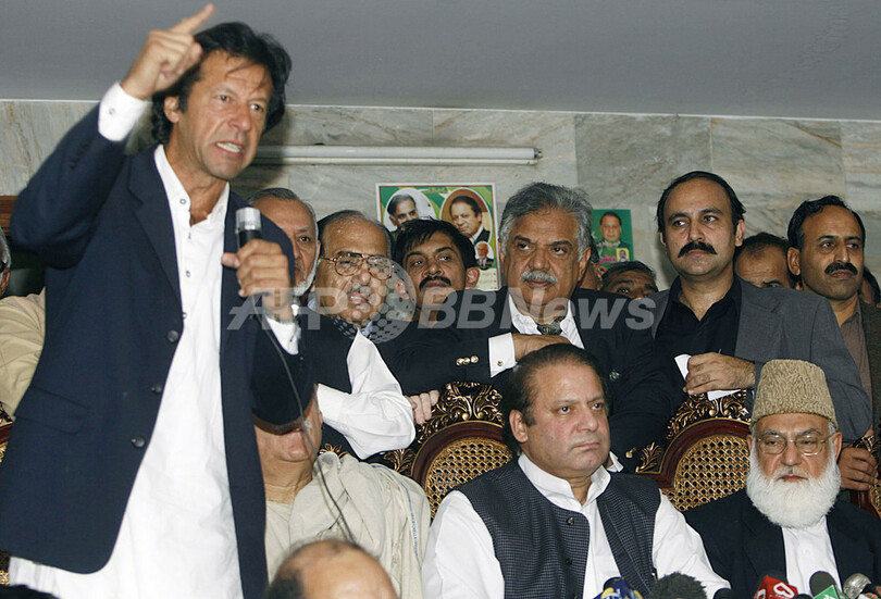 これに先立ち、ナワズ・シャリフ(Nawaz Sharif)元首相は、野党連合「全党民主化運動(All Parties Democratic Movement)」 は総選挙をボイコットすると表明した。PPPは野党連合に含まれていない。(c)AFP