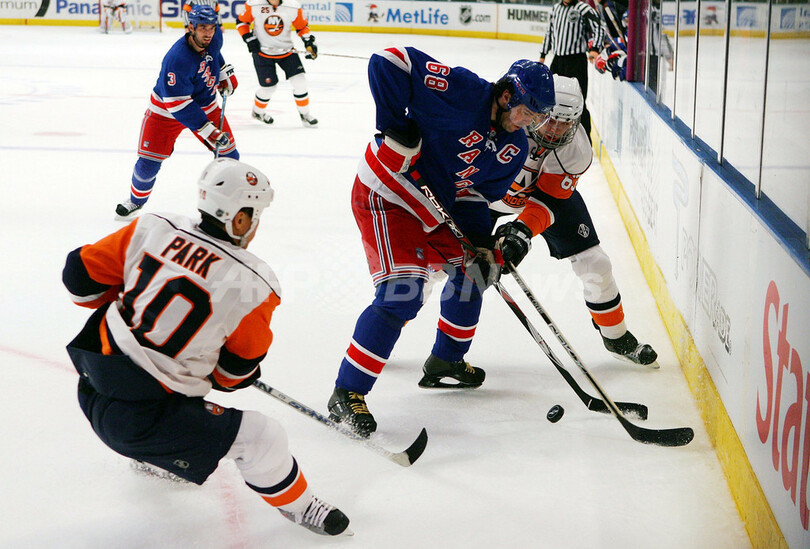 スポーツ ウインタースポーツ レンジャーズ アイランダーズ破り連敗を2で止める 2007年11月30日 15:00 発信地:ニューヨーク/米国 [ 北米 米国 ] このニュースをシェア ‹ › ❮ 10/10 ❯ アイランダーズのヨセフ・ヴァジチェック(%%Josef Vasicek%%、右)とリチャード・パーク(%%Richard Park%%、左)のチェックを受けるレンジャーズのヤロミール・ヤーガー(%%Jaromir Jagr%%、右2)。(c)AFP/Getty Images Jim McIsaac 画像作成中 ! 【11月30日 AFP】07-08NHL、ニューヨーク・レンジャーズ(New York Rangers)vsニューヨーク・アイランダーズ(New York Islanders)。試合はレンジャーズが4-2でアイランダーズを破り、連敗を2で止めた。(c)AFP/Getty Images ウインタースポーツ 一覧へ> メディア・報道関係・法人の方向け 写真・動画 購入のお問合せ>