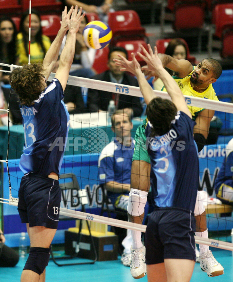 スポーツ スポーツ その他 ブラジル ストレートでアルゼンチンを降し大会8勝目 2007年11月30日 16:45 発信地:東京 [ アジア・オセアニア 東京 ] このニュースをシェア ‹ › ❮ 9/9 ❯ アルゼンチンのギジェルモ・ガルシア(%%Guillermo Garcia%%、左)とディエゴ・ステパネンコ(%%Diego Stepanenko%%、右前)のブロックに対しスパイクを放つブラジルのアンデルソン・ロドリゲス(%%Anderson Rodrigues%%)。(c)AFP/KAZUHIRO NOGI 画像作成中 ! 【11月30日 AFP】バレーボールW杯2007(FIVB Volleyball World Cup 2007)・男子・第4ラウンド、アルゼンチンvsブラジル。試合はブラジルがセットカウント3-0(25-20、25-22、25-16)のストレートでアルゼンチンを降し大会8勝目を挙げた。(c)AFP スポーツ その他 一覧へ> メディア・報道関係・法人の方向け 写真・動画 購入のお問合せ>