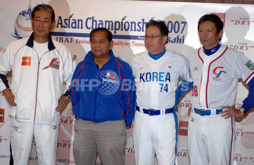 スポーツ 野球 野球の北京五輪アジア予選・決勝リーグ開幕を控え各国の代表監督が会見 2007年11月30日 19:38 発信地:台湾 [ 中国・台湾 台湾 ] このニュースをシェア ‹ › ❮ 1/6 ❯ 記者会見に臨む(左から)星野仙一(%%Hoshino Senichi%%)監督、フィリピンの%%Eladio Baradas%%監督、韓国の韓国の金卿文(キム・ギョンムン、%%Kim Kyung Moon%%)監督、台湾の郭泰源(カク・タイゲン、%%Kuo Tai-yuan%%)監督。(c)AFP/Sam YEH 画像作成中 ! 【11月30日 AFP】野球、北京五輪アジア予選・決勝リーグ開幕を12月1日に控え、各国代表監督が記者会見を行った。同大会は1日から3日までの日程で総当り方式で行われ、1位チームは北京五輪出場権を獲得し、2位、3位のチームは2008年3月に行われる世界最終予選に回る。(c)AFP 野球 一覧へ> メディア・報道関係・法人の方向け 写真・動画 購入のお問合せ>