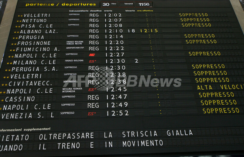 【12月1日 AFP】イタリアで11月30日、過去25年で最大規模の交通機関のストライキが実施された。旅客機数百便のほか、電車、バス、連絡フェリーが運休、救急車や霊きゅう車も業務を停止した。