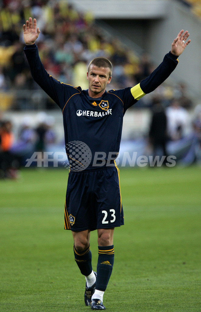 【12月1日 AFP】サッカー親善試合、ウェリントン・フェニックス(Wellington Phoenix、オーストラリア・Aリーグ)vsロサンゼルス・ギャラクシー(Los Angeles Galaxy、MLS)。試合はデビッド・ベッカム(David Beckham)が1ゴール(後半31分)を挙げる活躍などで、ロサンゼルス・ギャラクシーが4-1でウェリントン・フェニックスに勝利を収めた。(c)AFP