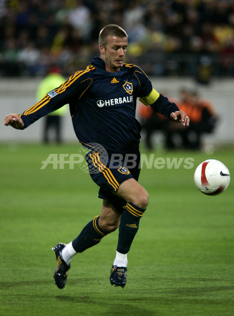 【12月1日 AFP】サッカー親善試合、ウェリントン・フェニックス(Wellington Phoenix、オーストラリア・Aリーグ)vsロサンゼルス・ギャラクシー(Los Angeles Galaxy、MLS)。試合はデビッド・ベッカム(David Beckham)が1ゴール(後半31分)を挙げる活躍などで、ロサンゼルス・ギャラクシーが4-1でウェリントン・フェニックスに勝利を収めた。(c)AFP