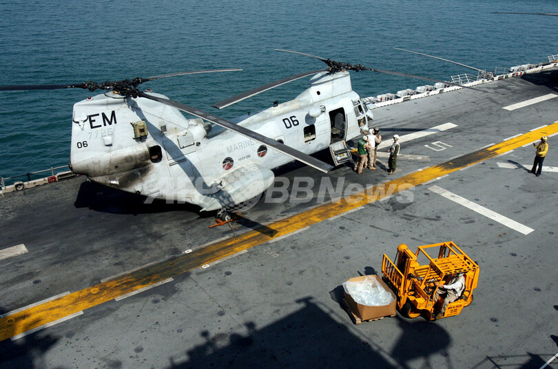 米軍はキアサージの浄水装置で数千リットルの飲料水を製造し、被災地に空輸している。(c)AFP/Shafiq Alam