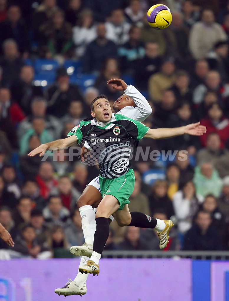 スポーツ サッカー レアル・マドリード ラシンを降しシーズン10勝目 2007年12月2日 8:28 発信地:マドリード/スペイン [ ヨーロッパ スペイン ] このニュースをシェア ‹ › ❮ 4/11 ❯ レアル・マドリードのジュリオ・バプティスタ(%%Julio Baptista%%、奥)とハイボールを競るラシンのルイス・フェルナンデス(%%Luis Fernandez%%)。(c)AFP/JAVIER SORIANO 画像作成中 ! 【12月2日 AFP】サッカー、07-08スペイン・リーガエスパニョーラ1部・第14節、レアル・マドリード(Real Madrid)vsラシン・サンタンデール(Racing Santander)。試合はラウル・ゴンザレス(Raul Gonzalez)が前半4分と後半25分にゴールを挙げ2得点を記録し、レアル・マドリードが3-1で勝利を収めシーズン10勝目を挙げて首位をキープした。(c)AFP サッカー 一覧へ> メディア・報道関係・法人の方向け 写真・動画 購入のお問合せ>