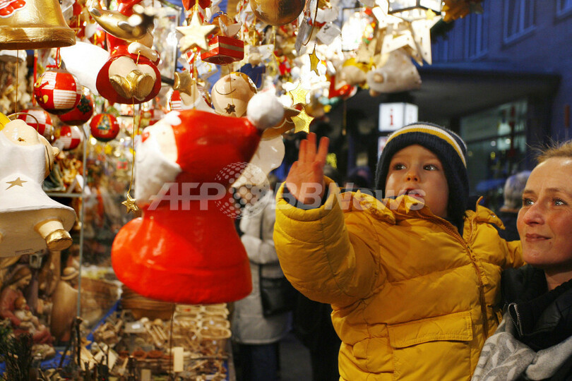 クリスマスマーケットは、ドイツではこの時期に欠かせないもので、温ワインやお菓子、ソーセージなど、クリスマスのごちそうに必要な食料品が販売されている。(c)AFP