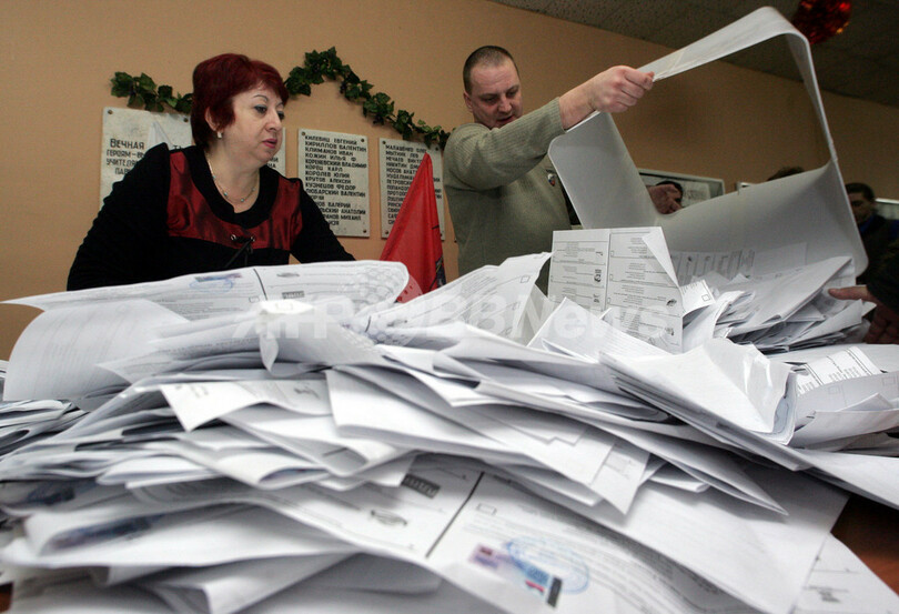 一方、農業を営むLyudmila Voyevodinaさん(46)は、「政治家なんてどれもこれも同じで、うんざり。農民の話をちっとも聞いてくれないんだから」とぼやいた。すると驚いたことに、投票箱を持っている選挙管理委員が「その通りですよね」と応じる一幕も見られた。(c)AFP/Marina Lapenkova