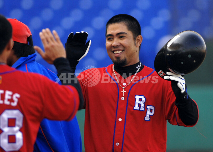 スポーツ 野球 韓国 フィリピンに圧勝し2勝1敗で大会を終える 2007年12月3日 19:20 発信地:台中/台湾 [ 中国・台湾 台湾 ] このニュースをシェア ‹ › ❮ 2/6 ❯ チームメイトと得点を喜ぶフィリピンのバージリオ・ロハス(%%Virgilio Roxas%%)。(c)AFP/Sam YEH 画像作成中 ! 【12月3日 AFP】野球、北京五輪アジア予選・決勝リーグ、韓国vsフィリピン。試合は、韓国が13-1の7回コールドでフィリピンを降し、通算2勝1敗の成績で大会を終えた。(c)AFP 野球 一覧へ> メディア・報道関係・法人の方向け 写真・動画 購入のお問合せ>