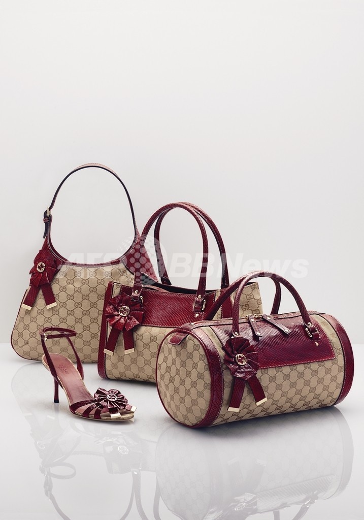 グッチのユニセフ支援キャンペーンは今年で3回目。今回の製品には、グッチ独自の素材であるGCキャンバスが使われ、モチーフは真紅の花飾り「スカーレット・ロゼット」。レザーのアップリケやプリントなどが、ハンドバッグやウォレット、レザーサンダルなどさまざまなアイテムにその花が使われている。同じ真紅のレザーのトリミングもデザインを効果的に引き立てている。