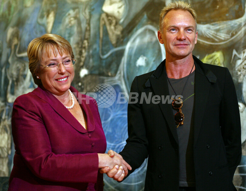 【12月6日 AFP】英ロックバンド、ポリス(The Police)のスティング(Sting)が5日、チリの首都サンティアゴ(Santiago)のモネダ宮殿(La Moneda presidential palace)でミチェル・バチェレ(Michelle Bachelet)大統領と故アウグスト・ピノチェト(Augusto Pinochet)元大統領の独裁政権下で姿を消した人々の家族と会談した。