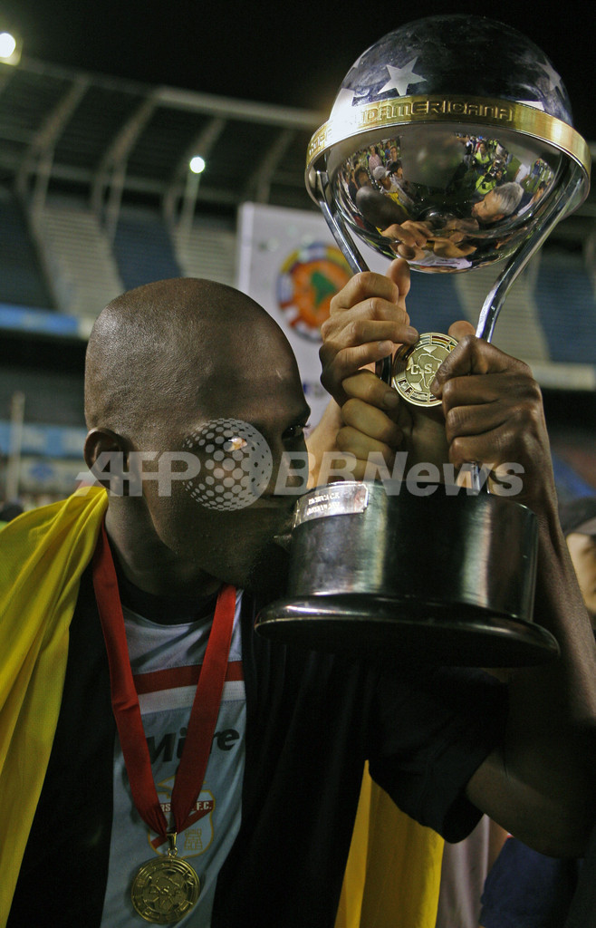 スポーツ サッカー アルセナル アウェーゴールで上回りコパ・スダメリカーナ初優勝 2007年12月6日 17:34 発信地:アベジャネーダ/アルゼンチン [ 中南米 アルゼンチン ] このニュースをシェア ‹ › ❮ 3/23 ❯ 優勝トロフィーに口づけをするアルセナルのホシマール・モスケラ(%%Jossimar Mosquera%%)。(c)AFP/ALEJANDRO PAGNI 画像作成中 ! 【12月6日 AFP】サッカー、コパ・スダメリカーナ2007(Copa Sudamericana 2007)・決勝、アルセナル・サランディ(Arsenal Sarandi、アルゼンチン)vsクラブ・アメリカ(Club America、メキシコ)、第2戦。試合はアルセナルが1-2で敗れて2戦合計スコア4-4で両チーム並んだが、アウェーゴールで上回ったアルセナルが初優勝を飾った。(c)AFP サッカー 一覧へ> メディア・報道関係・法人の方向け 写真・動画 購入のお問合せ>