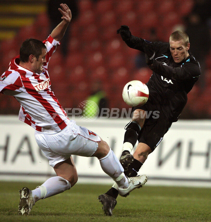スポーツ サッカー ボルトン アウェーでレッドスターを降しグループリーグ突破に前進 2007年12月7日 9:52 発信地:ベオグラード/セルビア [ ヨーロッパ セルビア ] このニュースをシェア ‹ › ❮ 2/12 ❯ レッドスターのミロシュ・バヤリツァ(%%Milos Bajalica%%)とボールを競り合うボルトンのクリスチャン・ビルヘルムソン (%%Christian Wilhelmsson%%、右)。(c)AFP/DIMITAR DILKOFF 画像作成中 ! 【12月7日 AFP】サッカーUEFA杯2007-08(UEFA Cup 2007-08)・グループリーグF、第4節、レッドスター(Red Star Belgrade)vsボルトン・ワンダラーズ(Bolton Wanderers)。試合はボルトン・ワンダラーズが1-0でレッドスターを降し、勝ち点を6に伸ばした。(c)AFP サッカー 一覧へ> メディア・報道関係・法人の方向け 写真・動画 購入のお問合せ>